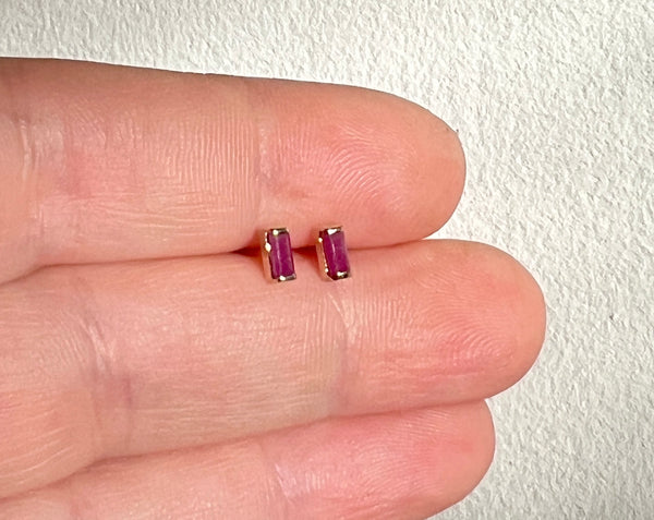 The Tiny Baguette Studs! Available in black spinel, seafoam green tourmaline, grape garnet, or African rubies. All certified fair trade and ethical.