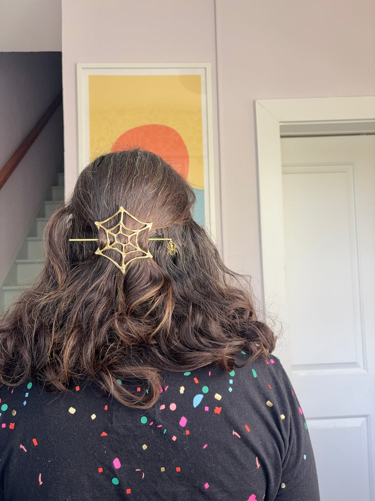 Spooky Season Spiderweb Hairslide Hairpin Hairclip handmade in Brass